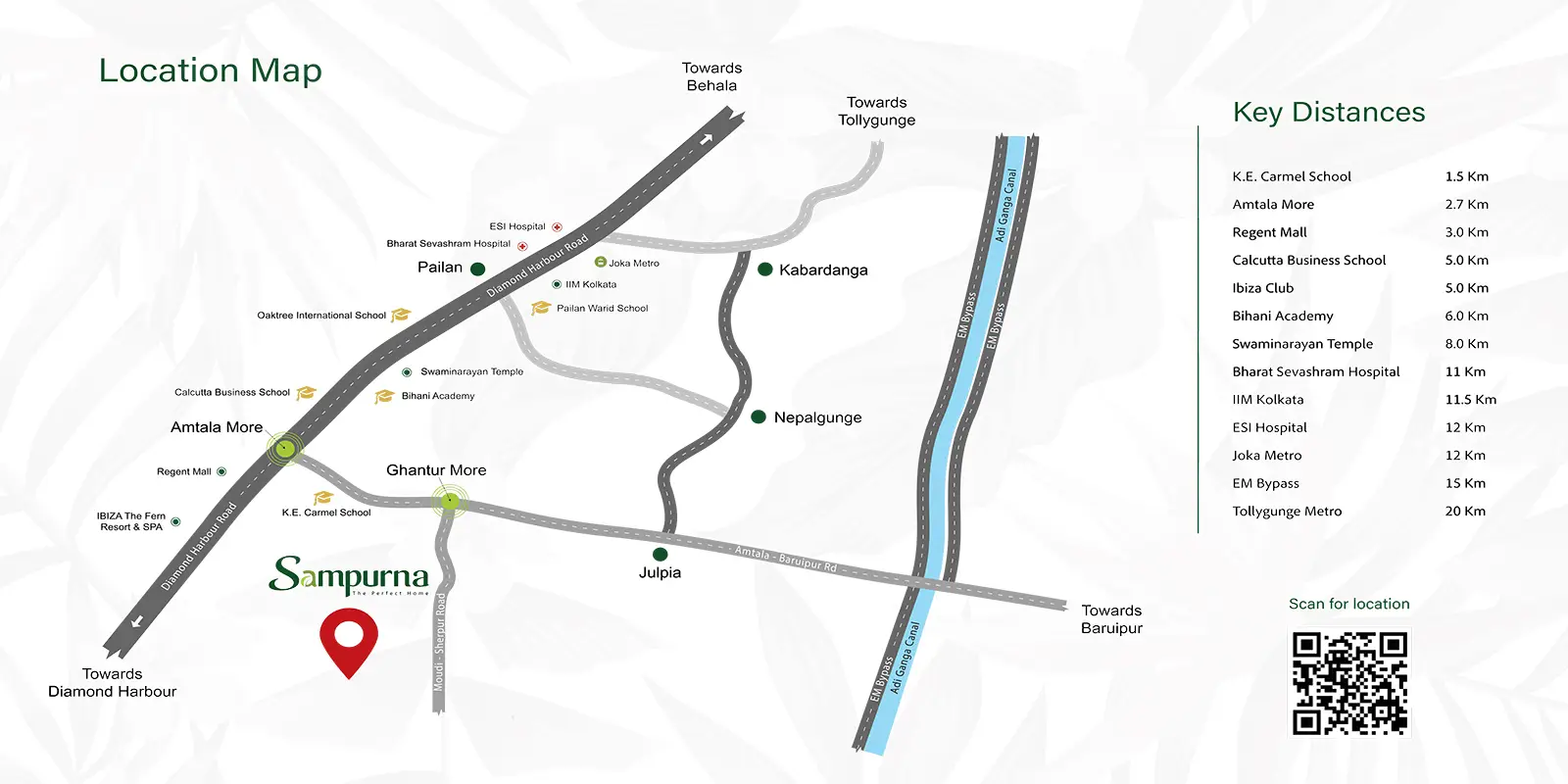 Sampurna is strategically located at Amtala, South 24 Parganas, offering excellent connectivity to major residential, commercial, and transit corridors of South and Central Kolkata.
